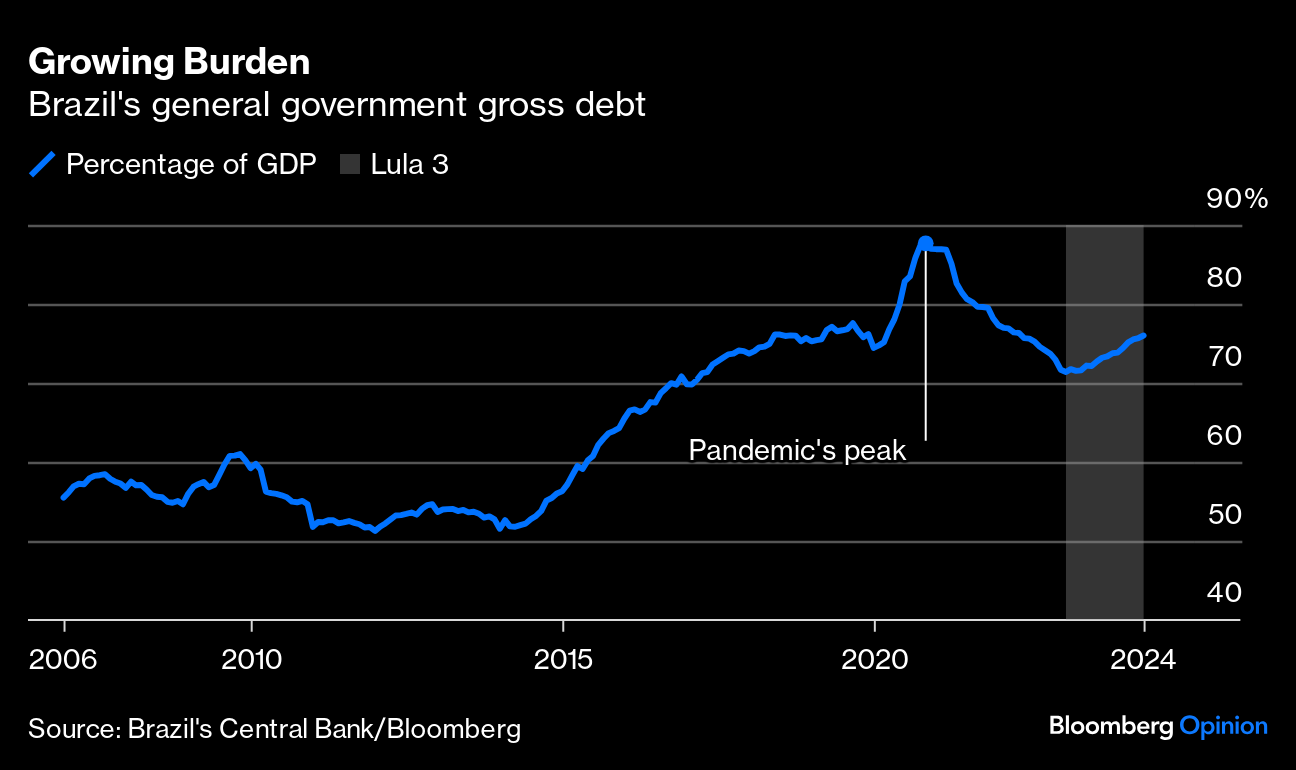 是的,巴西的财政前景并不乐观。这种情况已经持续了一段时间。尽管财政部长费尔南多·哈达德做出了保证和努力,但巴西很可能无法实现今年零结余预算的承诺目标(即不包括利息支付)。经济学家们希望这一指标占国内生产总值的0.7%,并在2025年降至0.6%,而名义赤字仅在明年降至6.4%,而2024年为7.2%。