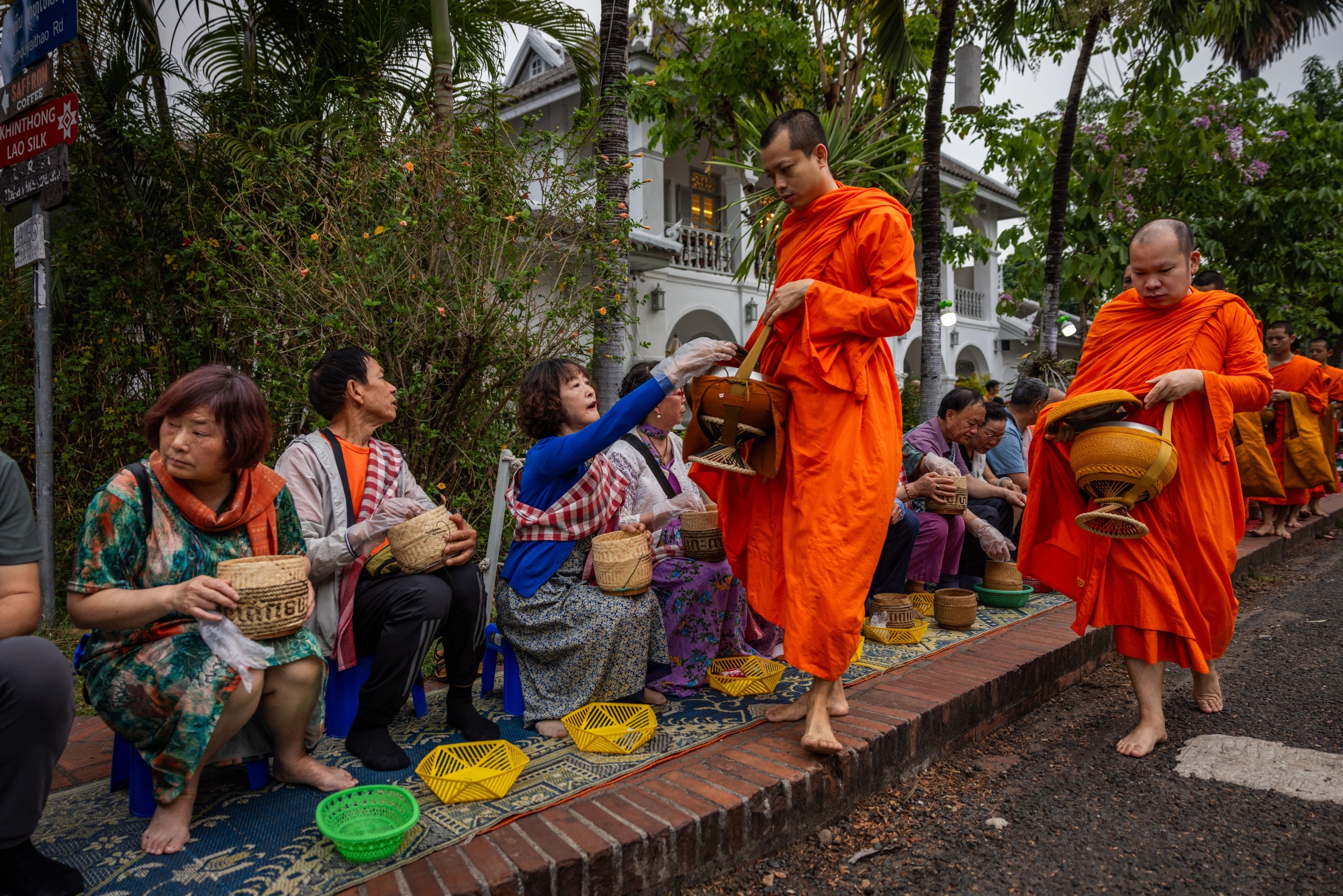 中国游客参加老挝琅勃拉邦给佛教僧侣施舍的仪式。摄影师:Lauren DeCicca/Getty Images世界旅游和旅游理事会本月早些时候预测,中国度假者今年将在海外旅行上花费1.8万亿元人民币(2500亿美元),首次超过疫情前水平。