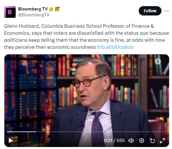全球选举之年对现任领导人来说迄今为止并不顺利,因为从印度到法国再到南非的领导人面临的选民至少是不满意的,甚至可能是愤怒的。哥伦比亚商学院的格伦·哈伯德曾是乔治·W·布什总统经济顾问委员会主席,他认为自己知道原因。我们被告知通货膨胀正在下降,“但我购买的东西价格仍然更高”,“普通人可能有所察觉”。无论是通货膨胀、全球化还是技术变革,我们的领导人告诉我们情况比我们理解的要好,“人们似乎并不欣赏这一点”。哈伯德认为,我们需要的是实现“生产率增长”,这意味着“促进投资”,以及“促进创新”。