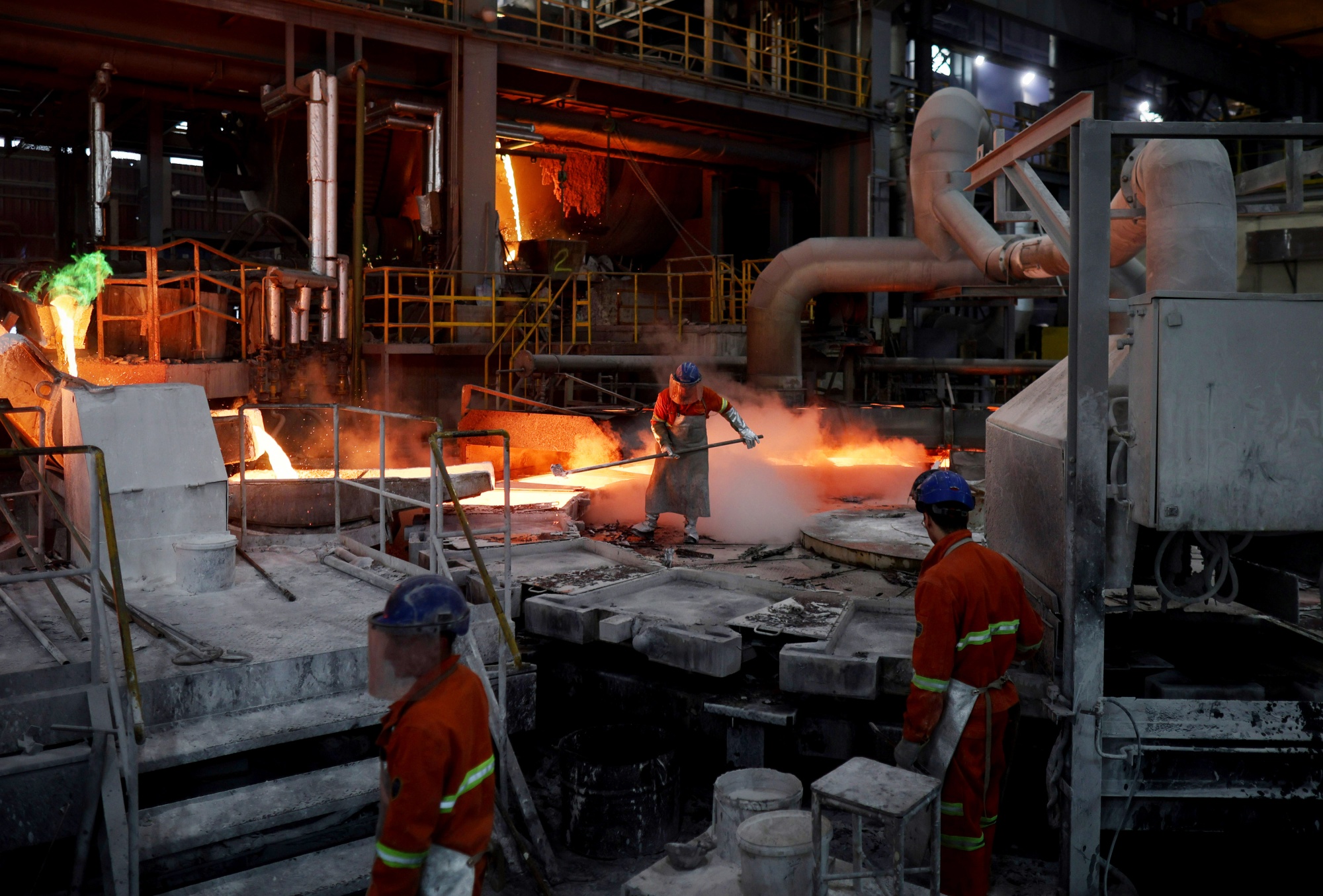 一个铜铸造厂的工人。