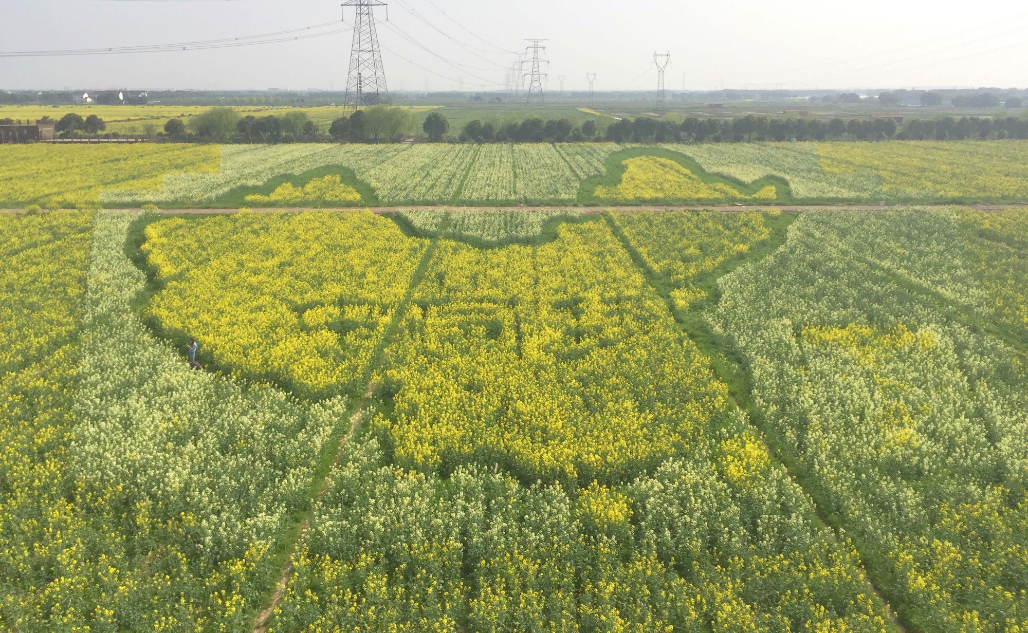 看起来并不像自然界那样:中国地图被刻在苏州的一片田地上。