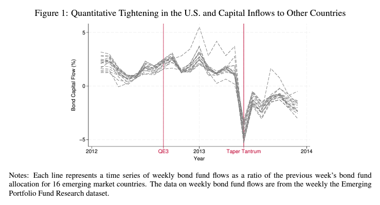 在一篇名为论文中,名为美国流动政府债务和新兴市场资本流动的研究人员发现,通过增加流动性,量化宽松政策为投资者提供了更多灵活性,使他们的资金在市场冲击时可以更容易出售。
