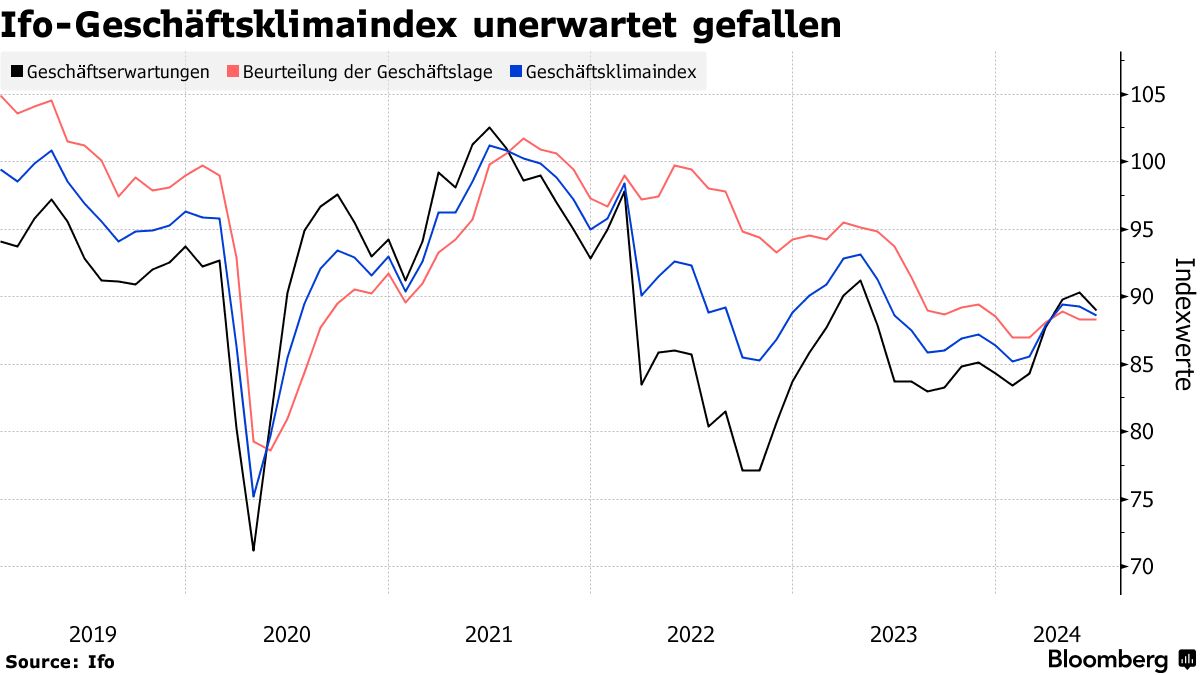 预期中的经济复苏在艰难的冬季后并未出现,主要原因是重要的工业部门。据Ifo所长克莱门斯·富斯特表示,企业担心订单状况以及与中国的贸易紧张局势。此外,尽管欧洲央行首次降息,但国内投资仍未振兴。