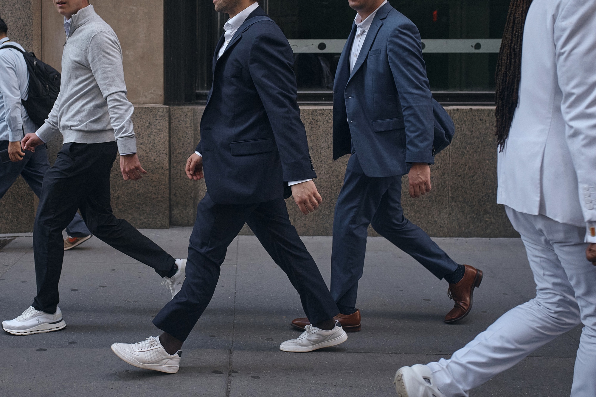 华尔街的专业人士正在将西装搭配运动鞋,因为大型银行放宽了着装规定。