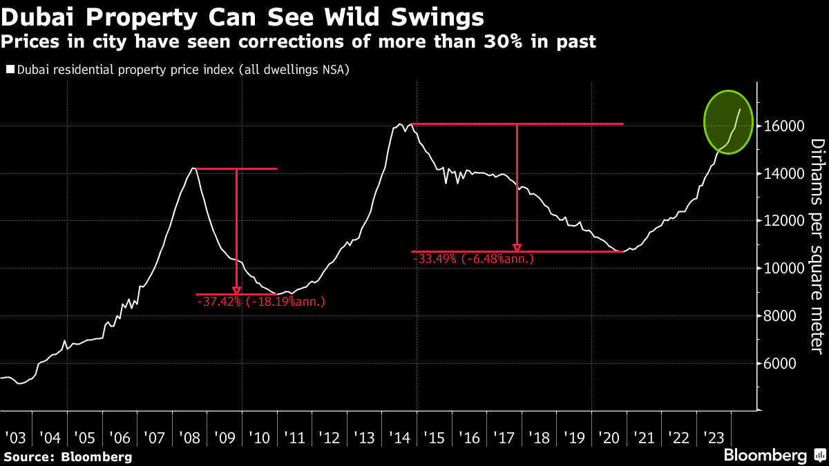 许多分析师预期这一激增——使迪拜成为全球最热门的房地产市场之一——会在2024年初趋于稳定甚至下降。