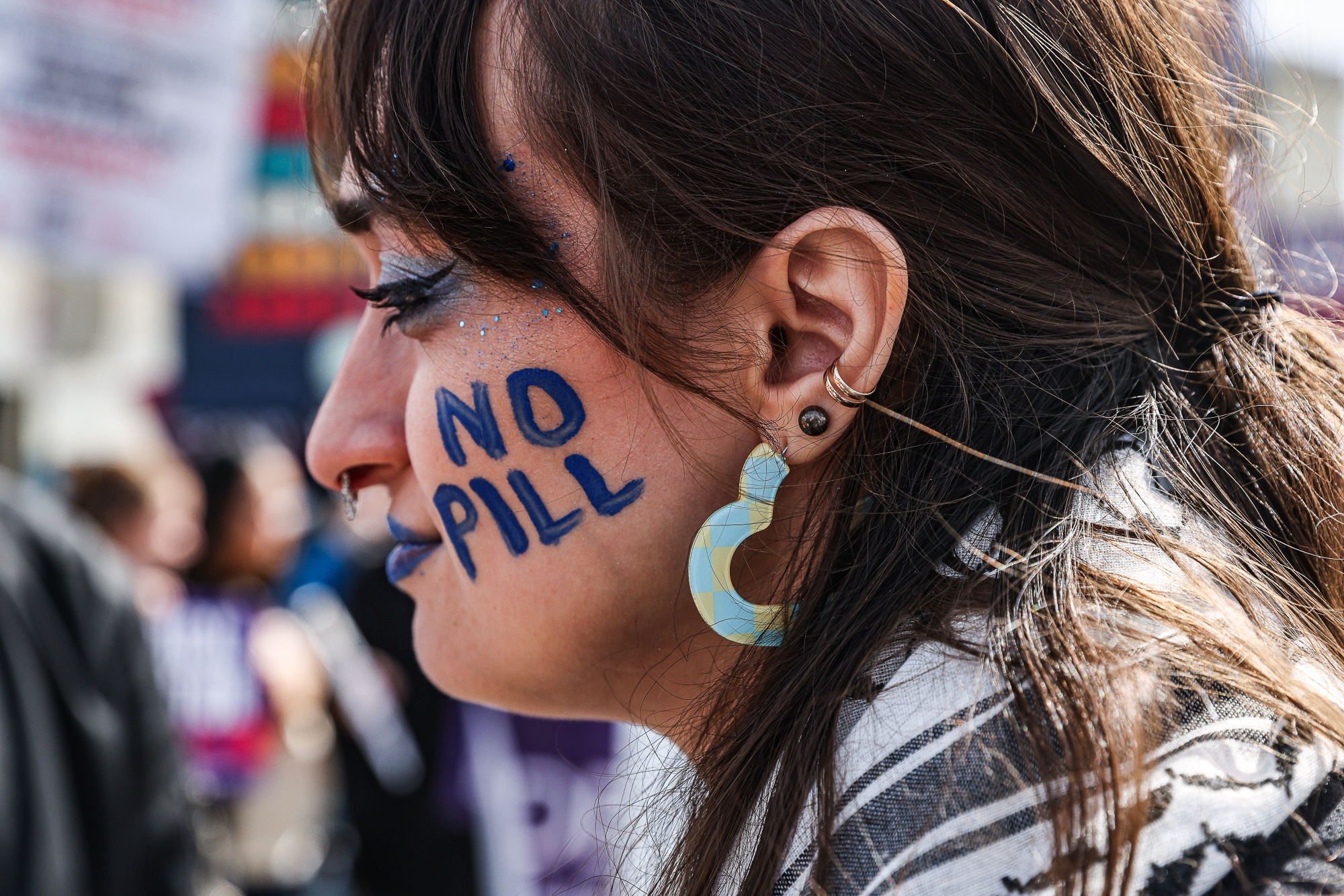 示威者脸上写着“无药丸”字样,站在最高法院外。摄影师:瓦莱丽·普莱什/彭博社纽约宪法修正案禁止基于性别认同和怀孕结果的歧视,共和党议员起诉要求将其从选票中删除,但上诉法院恢复了这一修正案,这是民主党的一次胜利。共和党人表示他们计划上诉至更高一级法院。