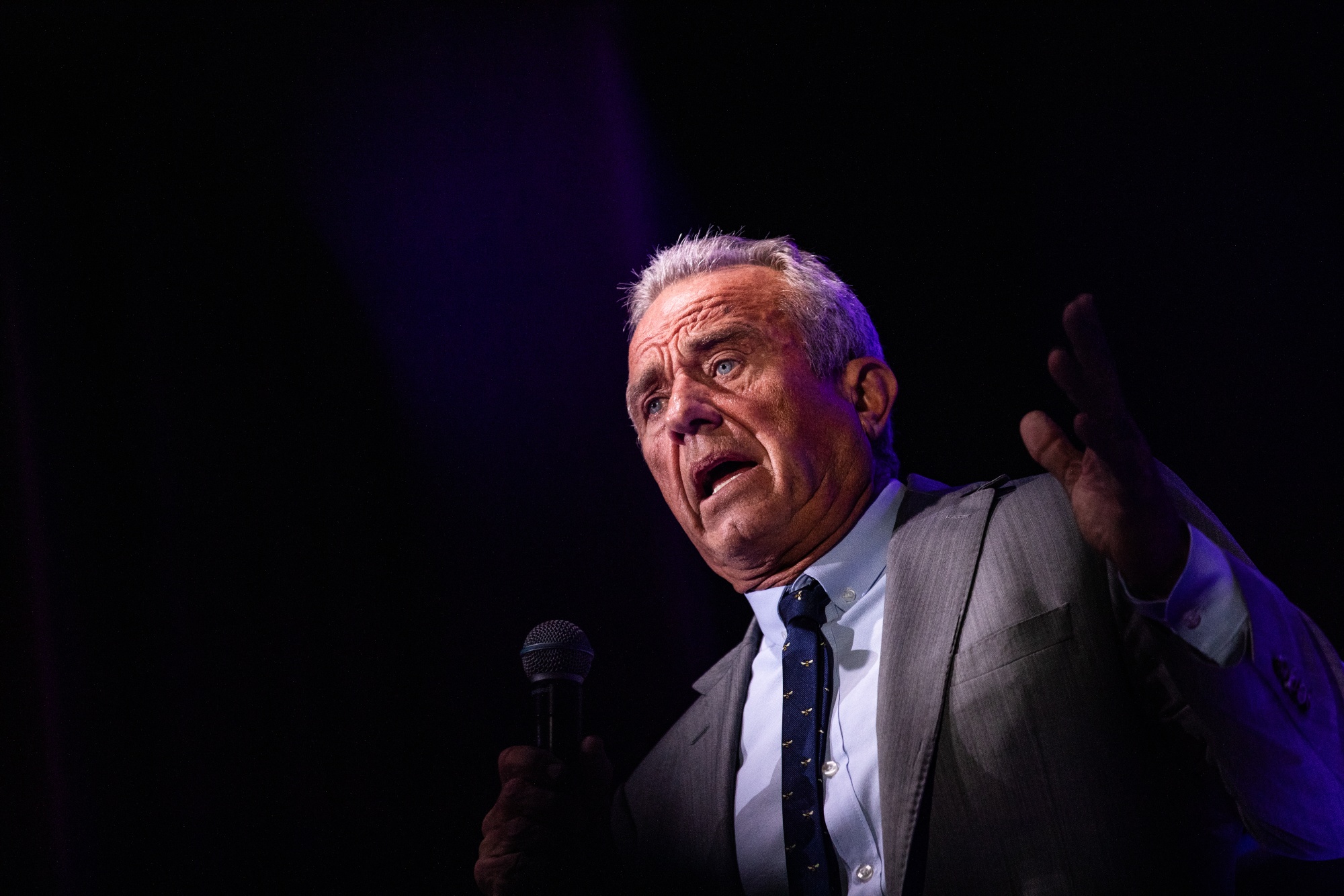 罗伯特·F·肯尼迪(Robert F. Kennedy Jr.)在密歇根州皇家橡树音乐剧院(Royal Oak Music Theater)的竞选活动中。