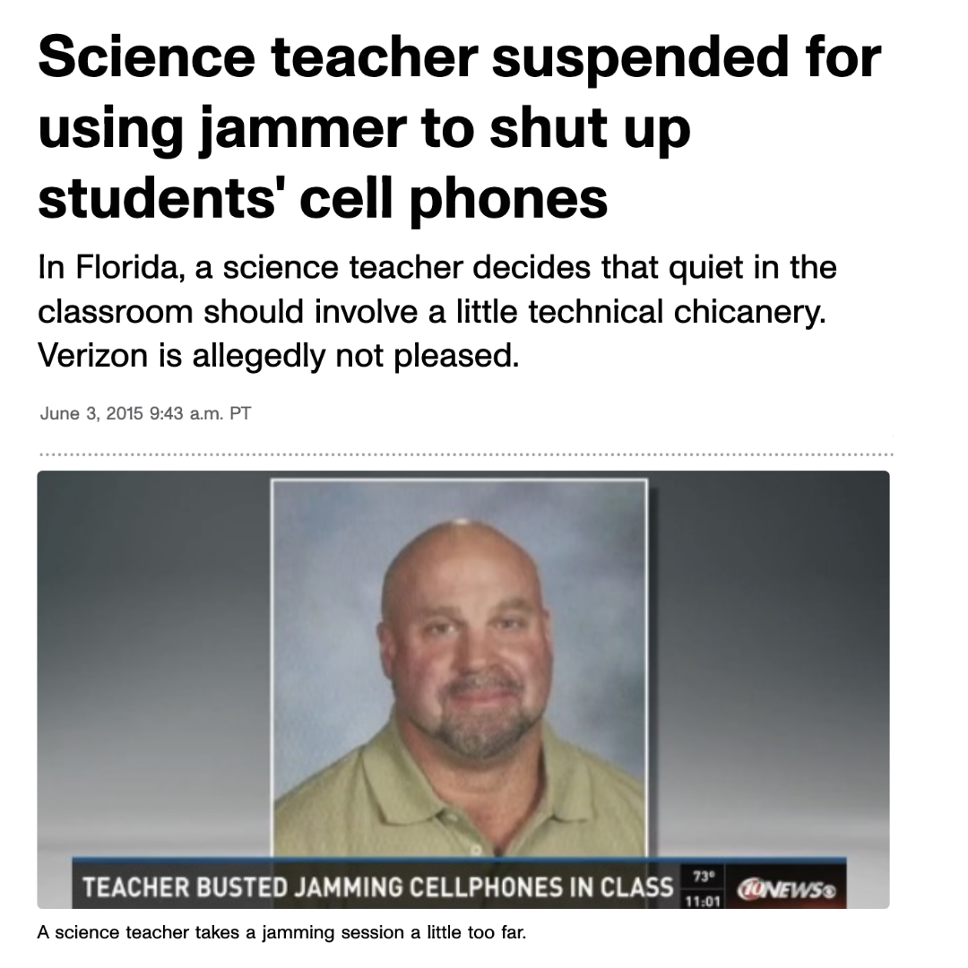 Charli XCX 最近 说 “领先真的很难。” 作为一个2020年知道如何正确 发音 Chappell Roan’s 名字的人,我完全同意。但有时,不仅仅是 难 领先,而且从法律上讲是违法的。以这位高中 科学老师为例。2015年,他因使用信号屏蔽器阻止学生在课堂上使用手机而被停职五天而没有工资:
