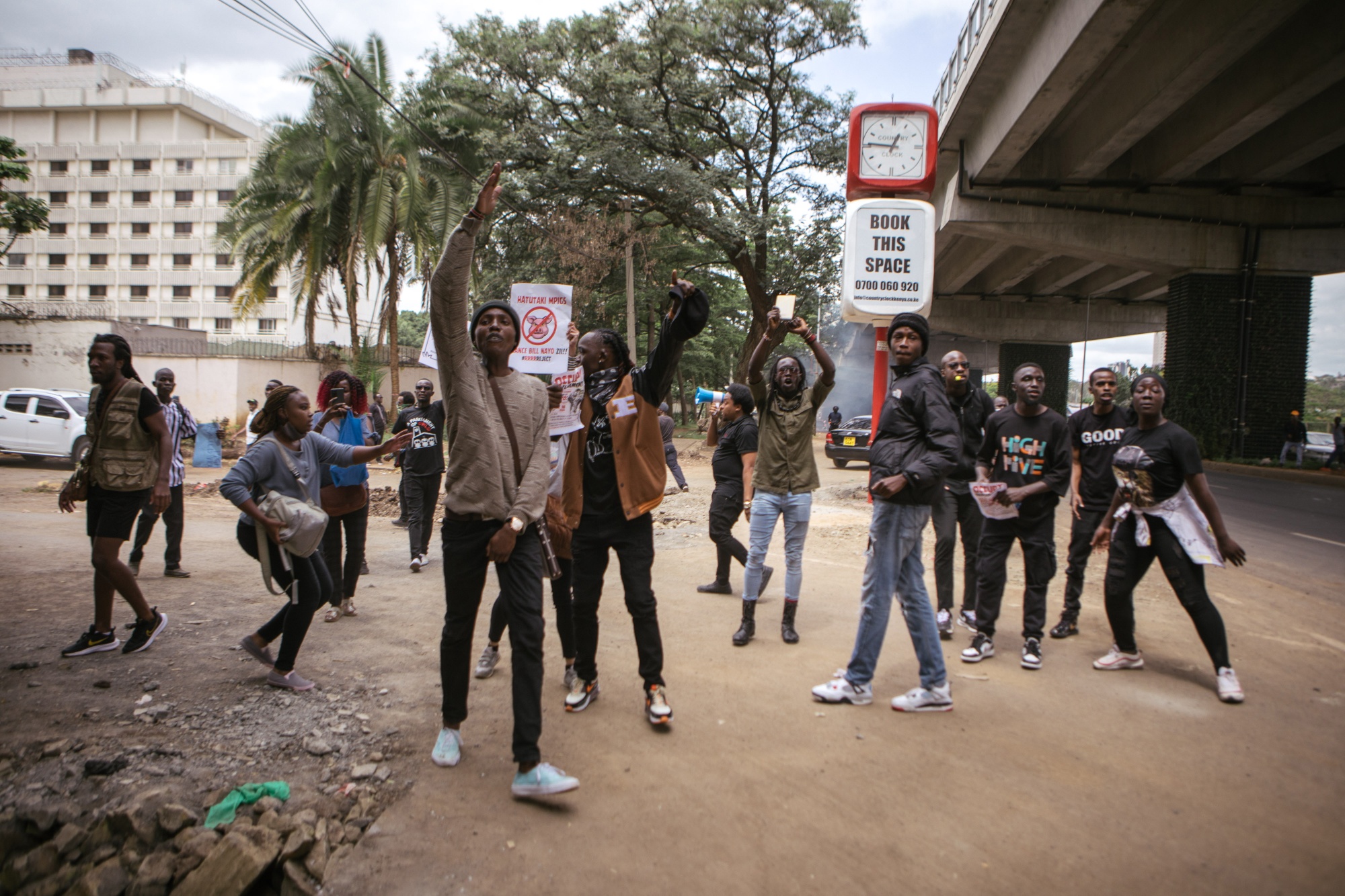 抗议者在内罗毕中央商务区示威,抗议政府提出的税收法案,时间为6月25日。摄影师:康臣·钟/Bloomberg