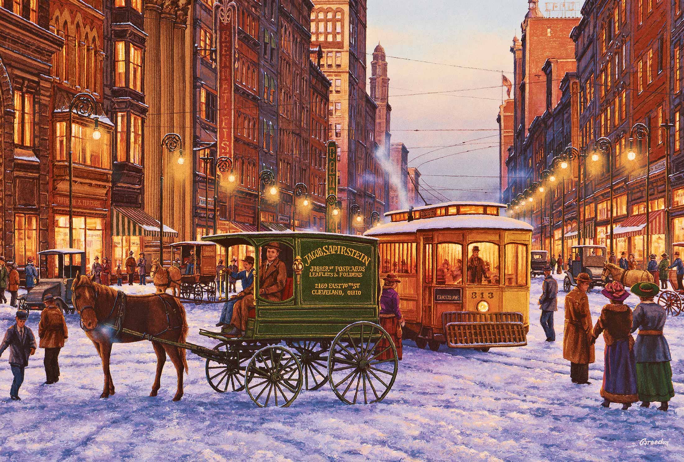 插图:约翰尼·格林齿为彭博商业周刊绘制雅各布·萨皮斯坦,来自波兰瓦索什的一位拉比之子,于1905年移民美国,经过芝加哥后最终来到了克利夫兰。他在一家市区酒店的大堂与亲戚一起做明信片生意,然后凭借50美元的银行贷款自立门户,从一辆马车上进口并销售优雅的德国制明信片到糖果店、新奇商品店和药店。