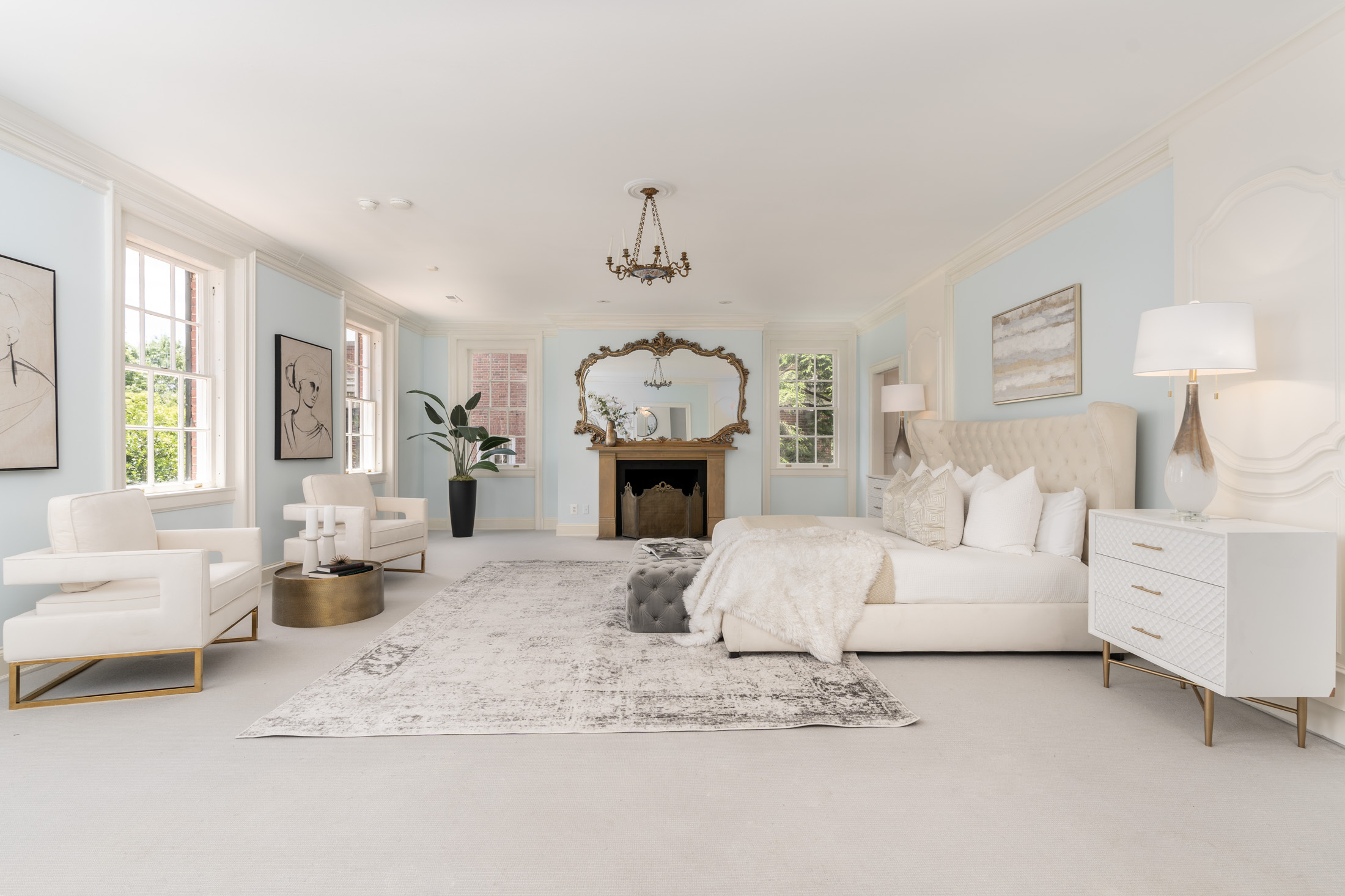 总共,这栋房子有六间卧室,以及七个全套浴室和三个半浴室。客人可以通过前门进入一个宏伟的门厅;在他们的左边是一个长36英尺的正式餐厅;在右边是一个接待室。在一楼的后面,有一间大卧室、浴室和厨房。上楼梯—也有一部电梯—到达二楼,你会发现一个大画廊,两个正式客厅,一个略微不那么正式的家庭房和第二个厨房。