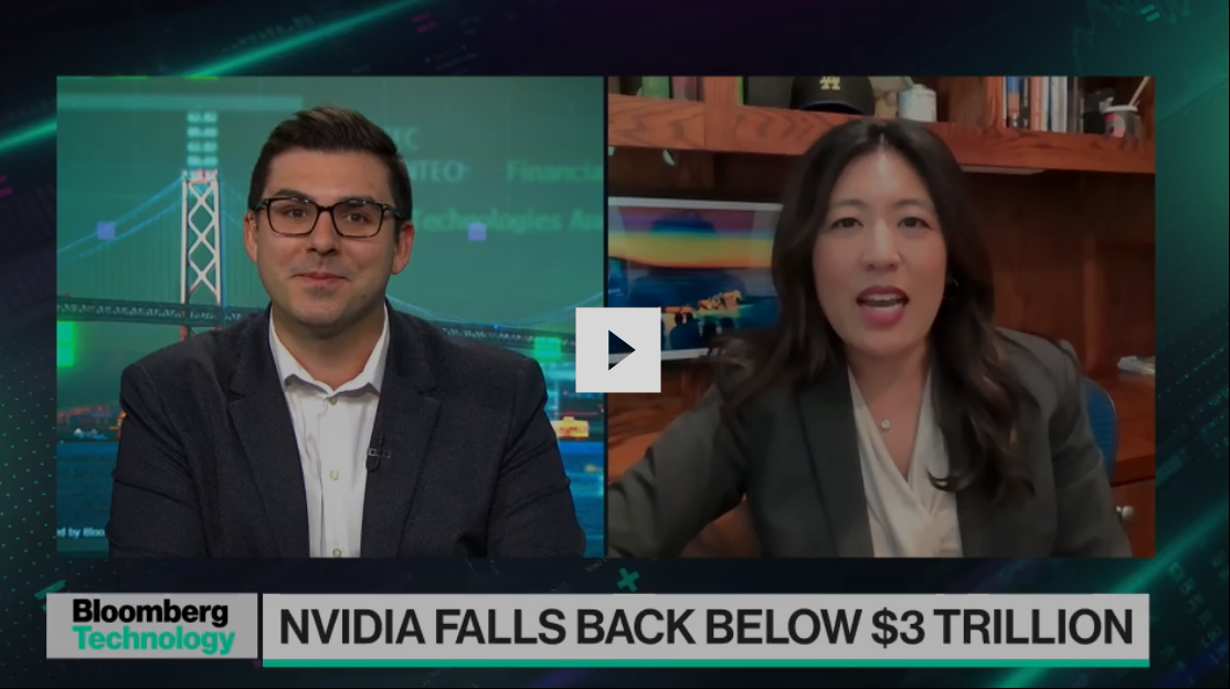 Nvidia股价周一下跌了6.7%,股价连续第三个交易日下跌,市值蒸发超过4000亿美元,将其市值推至3万亿美元以下。Wealth Enhancement Group投资组合经理Ayako Yoshioka加入Ed Ludlow讨论Bloomberg Technology。### 充分充电