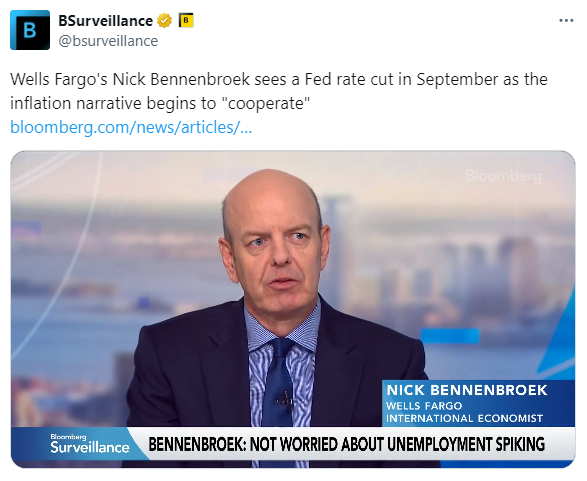 富国银行的尼克·贝南布鲁克预计美联储将在九月份首次降息: