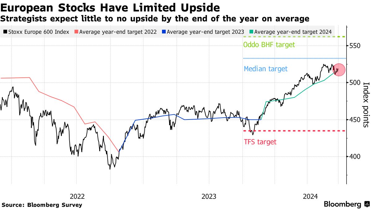 彭博新闻的一项民意调查显示,市场策略师们不指望今年欧洲股市会有额外的上涨。他们在法国大选之前采取观望态度,因为这可能会带来经济政策的重大变化。