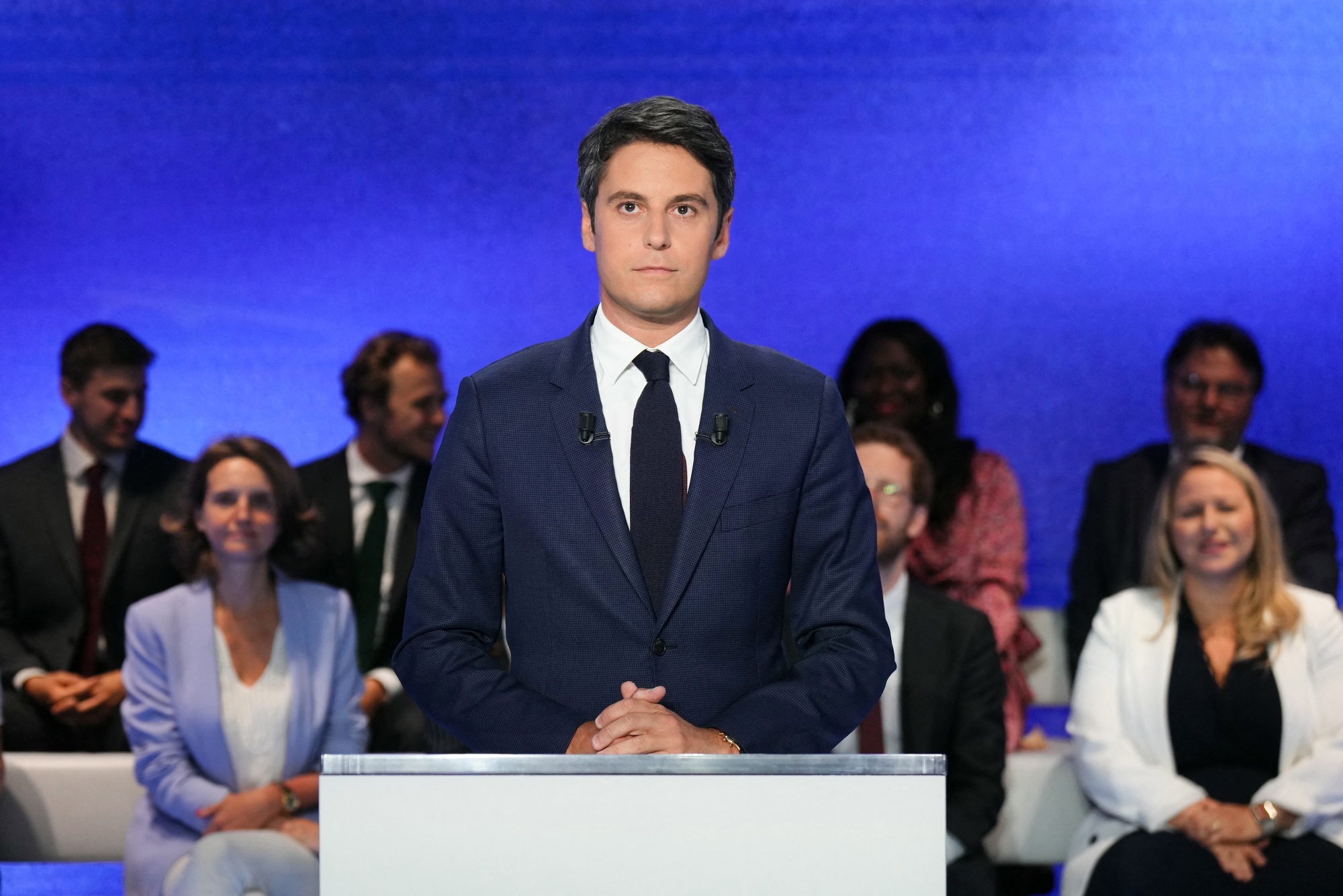 加布里埃尔·阿塔尔在6月25日布洛涅-比扬古尔的一场政治辩论前。摄影师:迪米塔尔·迪尔科夫/法新社/法新社图片社他们还就移民问题展开了激烈争论,与他们的广泛政治倾向密切相关。虽然阿塔尔抨击巴德拉质疑双重公民的法国性,巴德拉表示他将“重新控制移民”。邦帕尔提醒巴德拉他的意大利血统。