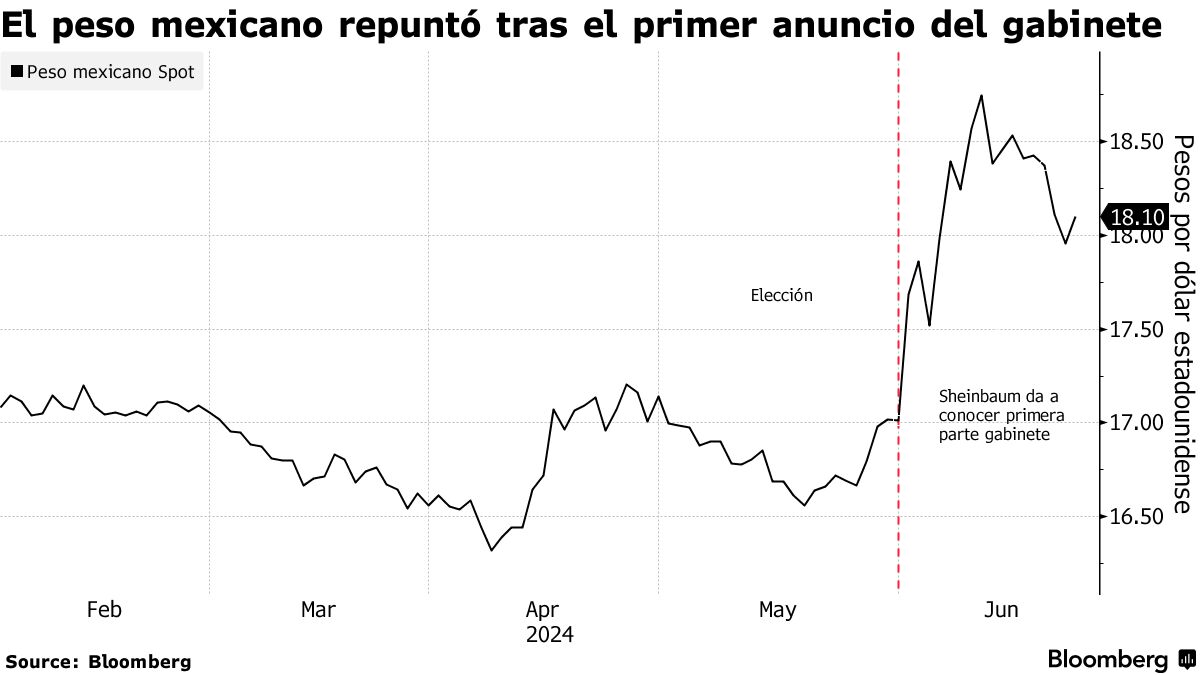然而,上周,在选举后的第18天,谢因鲍姆在市场上取得了她的第一个 明显胜利。周四,当她任命外交政策能手马塞洛·埃布拉德担任经济部长时,墨西哥比索出现了反弹。从那时起,货币已经上涨了近2%。对于投资者来说,这个决定揭示了谢因鲍姆的机智和务实一面,她愿意抛开与埃布拉德的个人恩怨(两人在去年的总统候选人提名战中曾是死对头),以确保在墨西哥内阁中最重要的职位之一上有一位有能力的操作者。