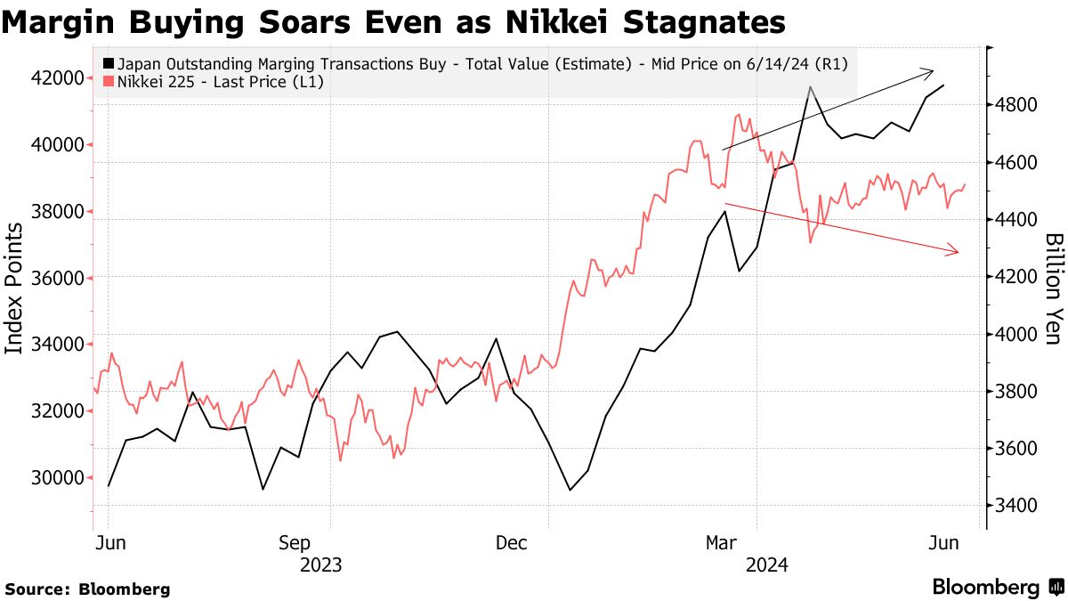 在经历了它们的惊人上涨之后,由于国内经济增长乏力、公司盈利预期令人失望以及担忧日本央行加息可能带来的后果,日本股市最近几个月落后于全球同行。提高了借贷成本。保证金买家实际上是向证券公司借钱购买股票,通常是高杠杆,如果市场疲软,投资者可能需要平仓,导致进一步抛售。
