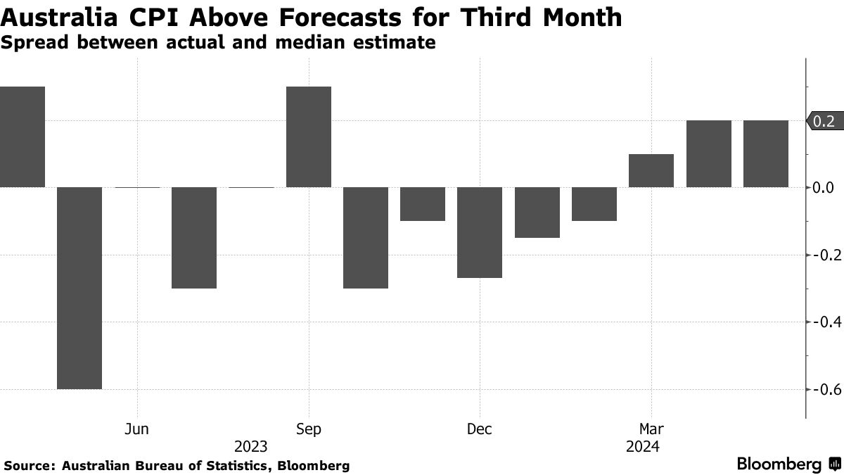摄影师:Soichiro Koriyama/Bloomberg澳大利亚的通胀在5月份连续第三个月加速,超出预期,这推动了货币走高,交易员增加了对澳大利亚储备银行在下次会议上恢复加息的押注。
