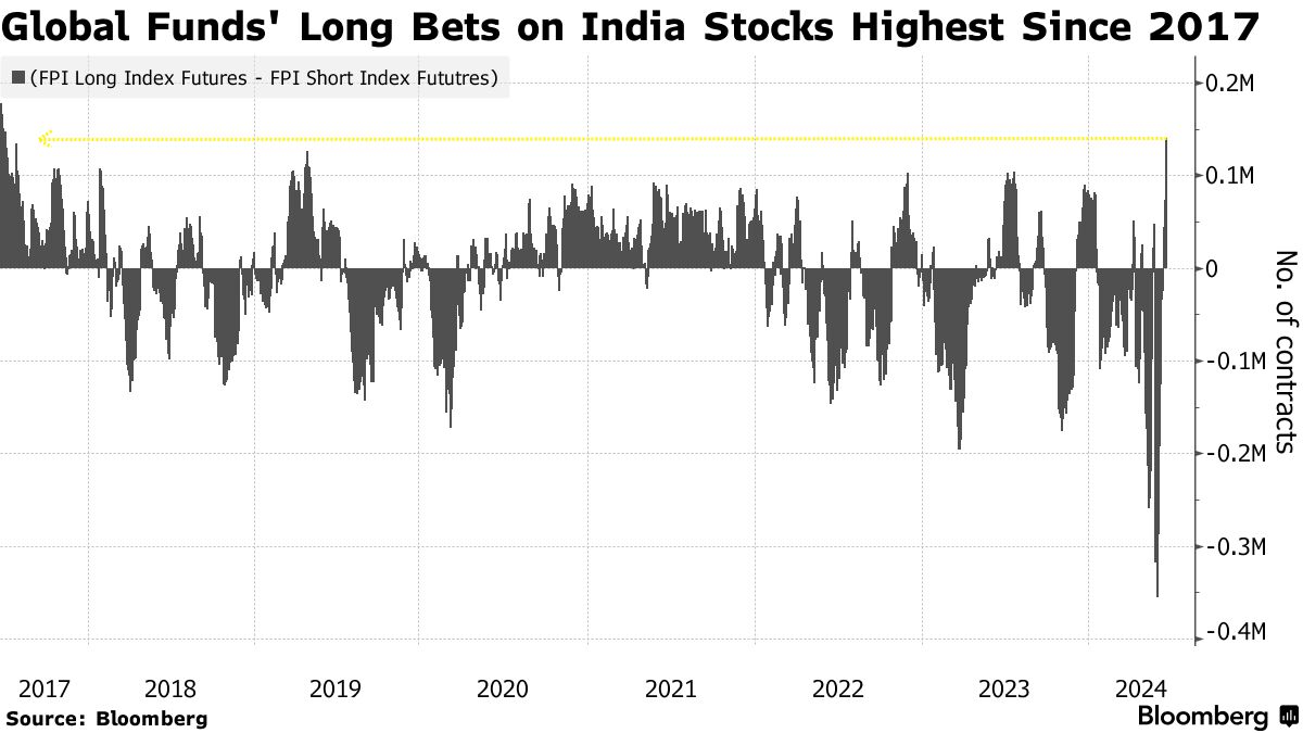 全球基金对印度股指期货的看涨情绪自2017年以来最高-彭博社
