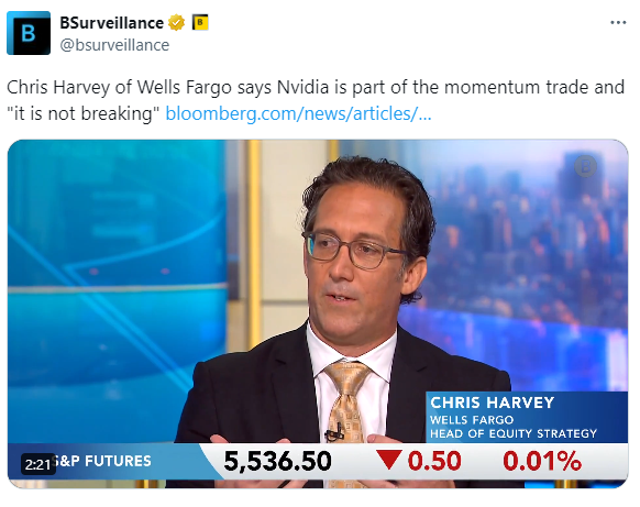 哈维说,动量交易“没有动摇”。即使你意识到整个市场中的弱点,也不能押注反对它。