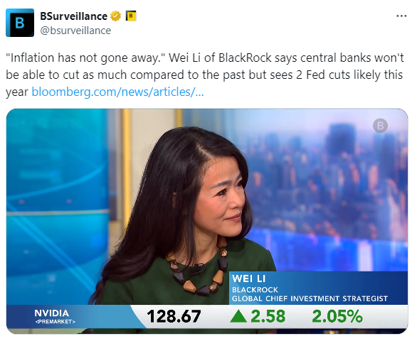 “通胀并没有消失,”她说。“我们仍处于劳动力短缺、净零过渡、制造供应约束以及持续通胀的环境中。 因此,即使各国央行开始降息,他们也不会像过去那样完全放开。”