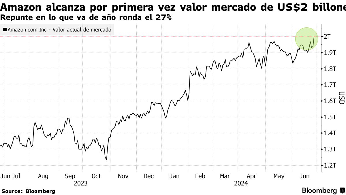 亚马逊公司首次达到2万亿美元的市值,这是由于人工智能推动的反弹将这家科技巨头推向了创纪录的领域。