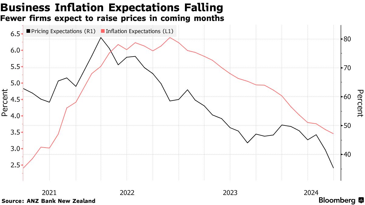 新西兰企业面临的成本压力减轻,因此不那么急于提高价格,这加剧了通胀放缓的迹象,根据澳新银行的一项调查。