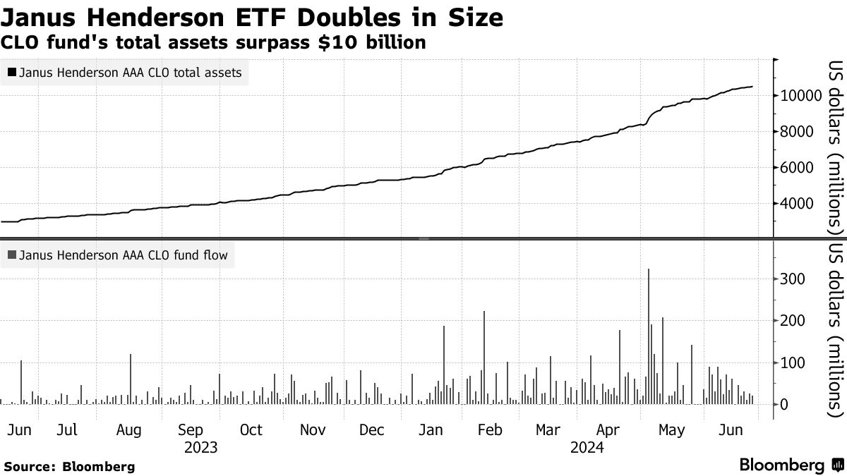 “增长非常迅速,甚至可能比人们预期的还要快,” VanEck Associates Corp. 的产品管理总监 William Sokol 说道。“这是由于一些原因,比如非常有利的市场,对降息预期的重新定价,长期高利率环境。所有这些因素加起来导致了过去几年的强劲表现。”