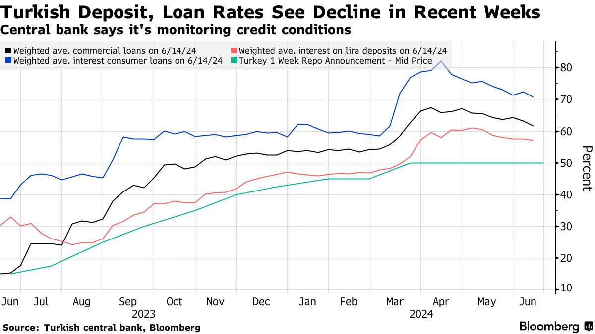 由法蒂赫·卡拉汉领导的货币政策委员会周四将一周回购利率维持在50%,与彭博社调查的所有经济学家的预测一致。MPC重申,其政策将保持紧缩,“直到月度通胀的基本趋势出现显著和持续的下降”,根据声明。