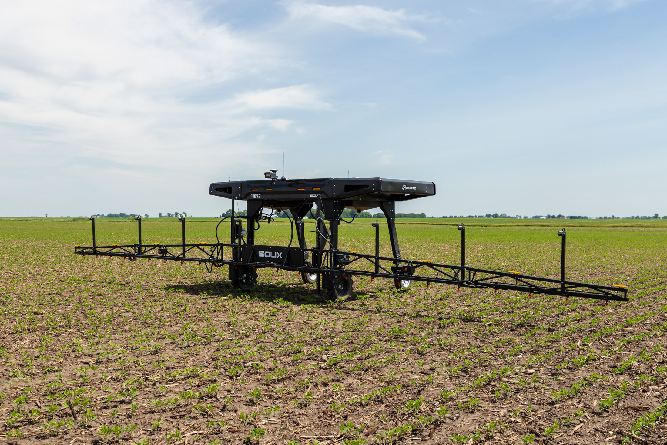 当 Solinftec的Solix Sprayer穿过庄稼时,多个喷嘴喷洒化学品。这些机器人被设计成始终留在田地里,即使种植者远在他乡,也能照料庄稼,通过内置太阳能电池板和附近的停靠站为自己充电。