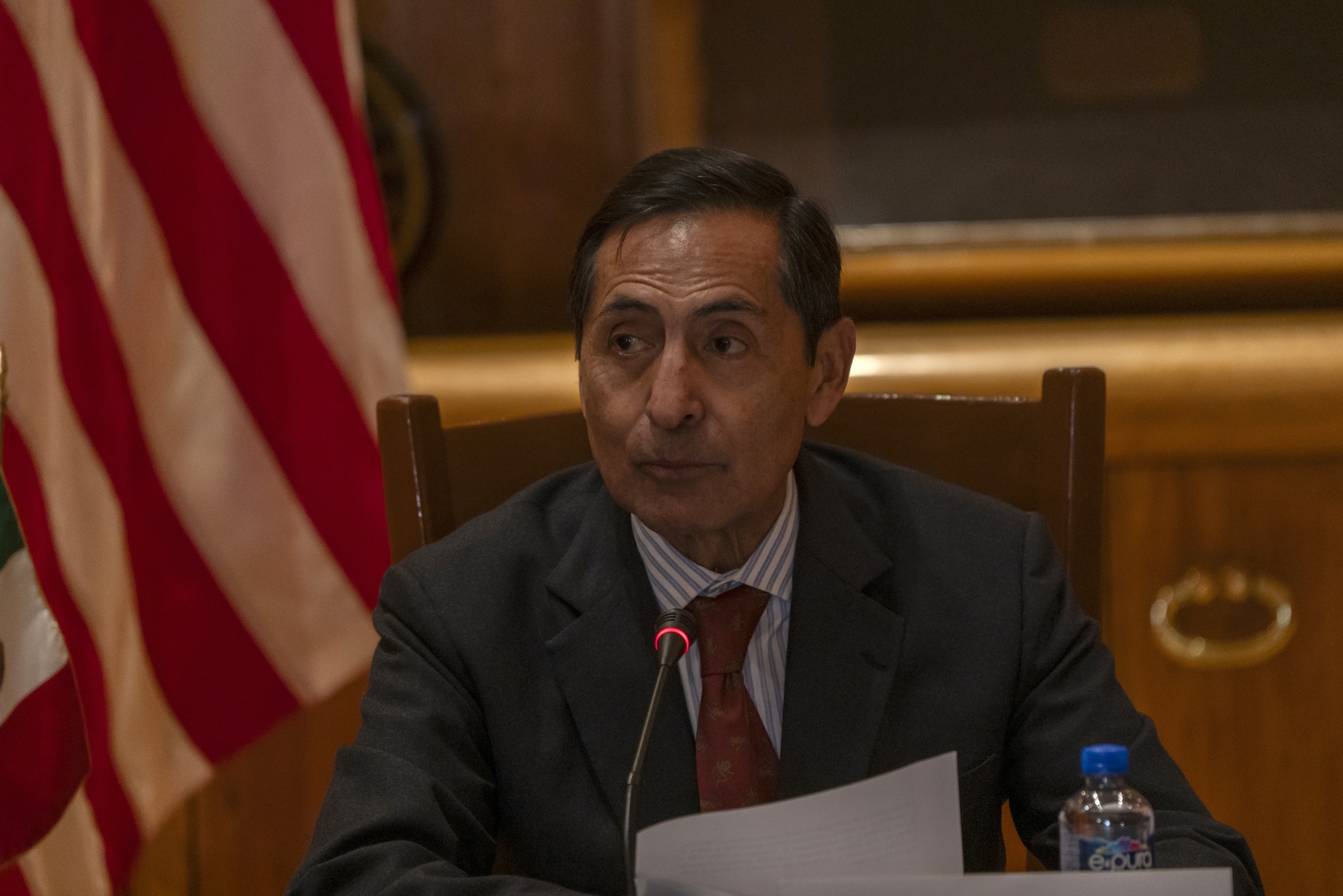 墨西哥财政部长Rogelio Ramírez de la O在墨西哥城Banqueros俱乐部的一次活动中,2023年12月6日。