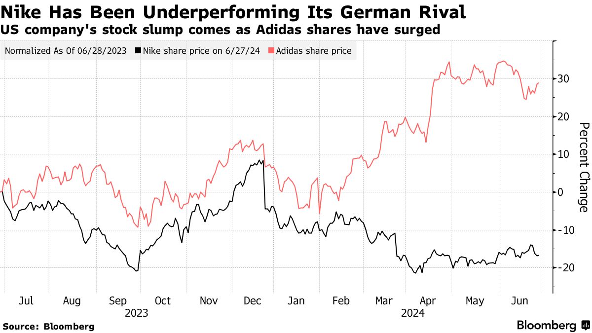 耐克股价因警告下跌13%,销售疲软情况恶化 - 彭博社