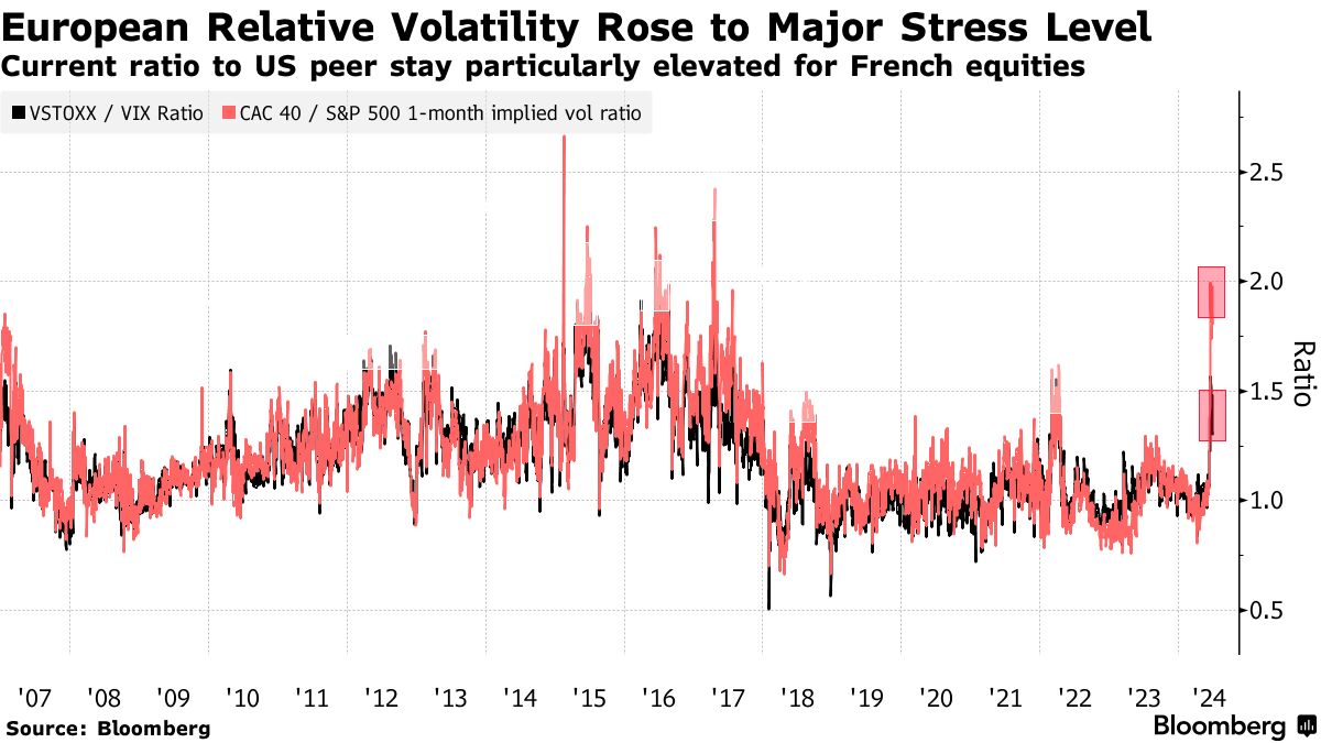 赌注很高。法国的财政廉洁性受到质疑,投资者甚至在马克龙的出人意料的决定之前就在做法国债券的空头交易,而该地区作为一个相对稳定且相对不易受波动影响的替代美国市场的吸引力受到了打击。