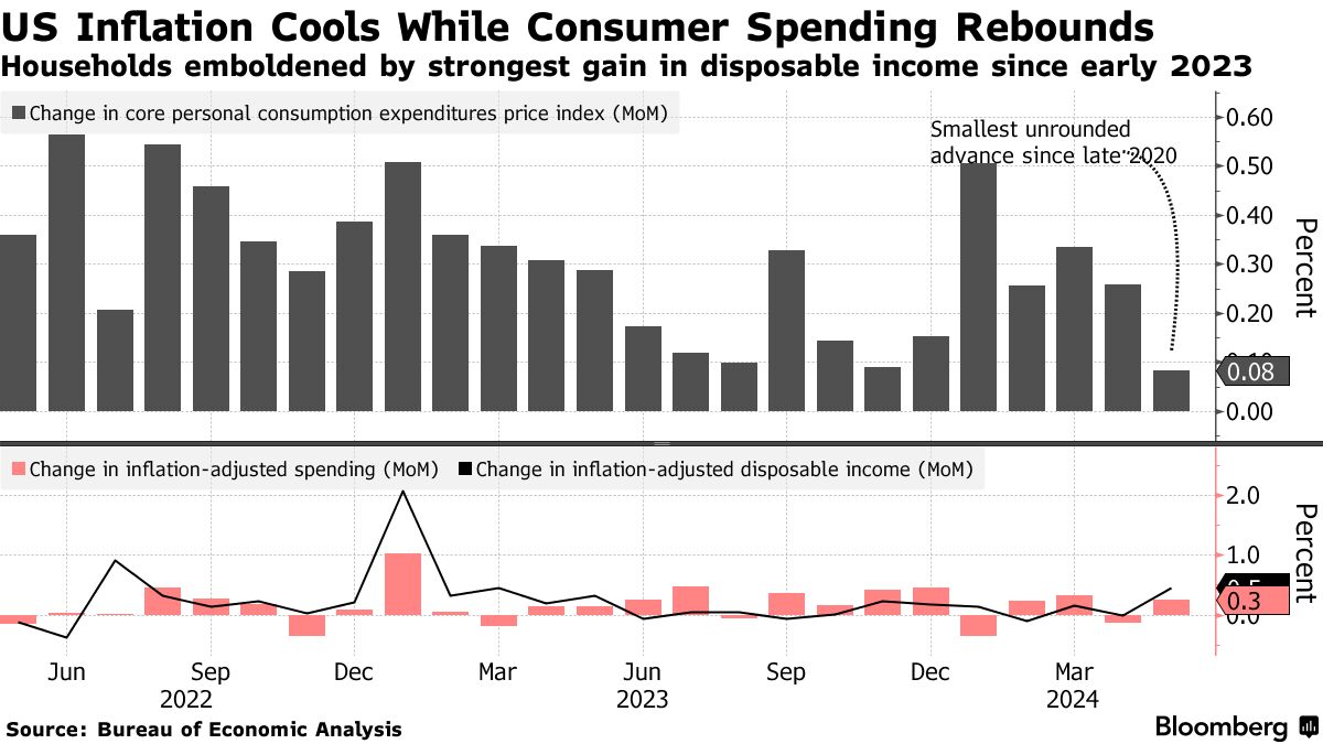 2024年5月美国PCE:联邦储备委员会偏爱的通胀指标增长速度为6个月来最慢-彭博社