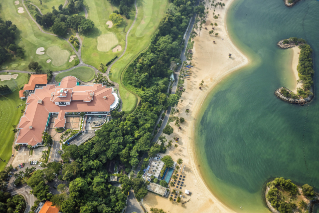 圣淘沙高尔夫俱乐部,左侧,位于圣淘沙岛。摄影师:Darren Soh/Bloomberg阅读更多:中国超级富豪推动新加坡高尔夫球会费达到61.8万美元