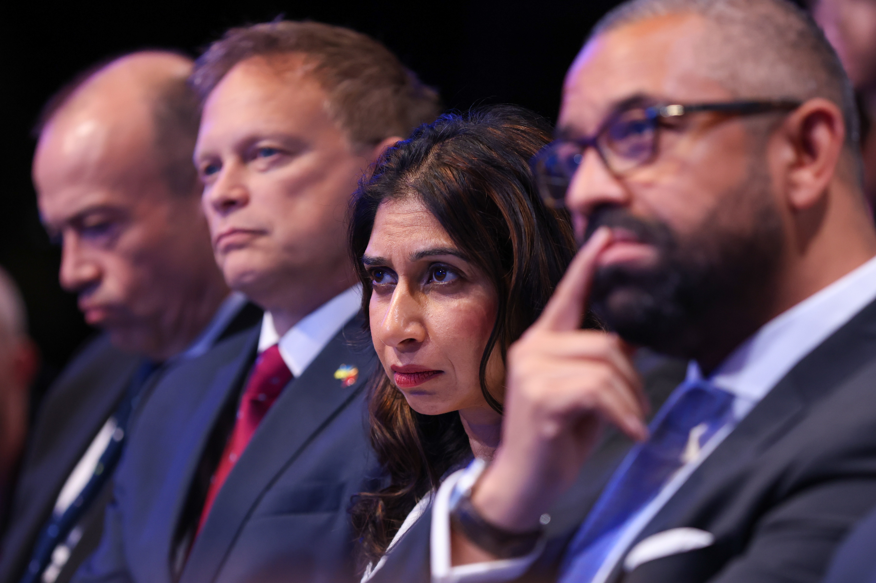 苏埃拉·布拉弗曼表示,她愿意让法拉奇加入保守党。摄影师:霍利·亚当斯/彭博社在可能领导反对党保守党的候选人中,只有前内政大臣苏埃拉·布拉弗曼表示愿意接受改革党领袖加入。知情人士表示,其他所有可能的候选人都不支持他加入。