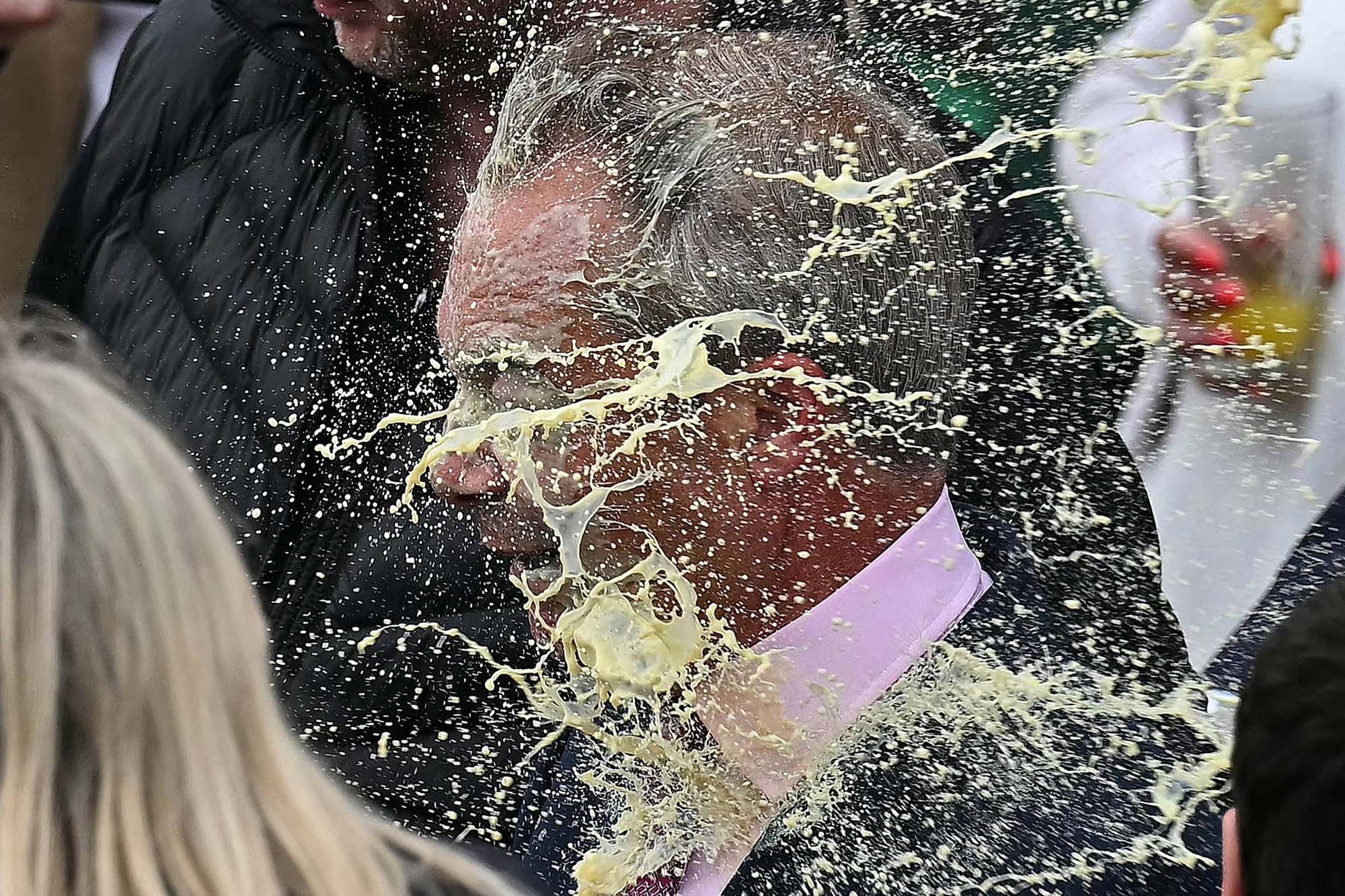 6月4日,法拉奇在克拉克顿的竞选活动中被泼了一杯奶昔摄影师:本·斯坦索尔/法新社/盖蒂图片社然而,法拉奇近年来对保守党或托利党来说有点像一张王牌。在脱欧公投后,他声称自己“夺回了国家”,是时候休息一下了。他乐此不疲地扮演英国的后座政治驾驶员角色,并受到前特朗普策略师史蒂夫·班农的推崇。去年,他在保守党大会上吸引了即兴人群。