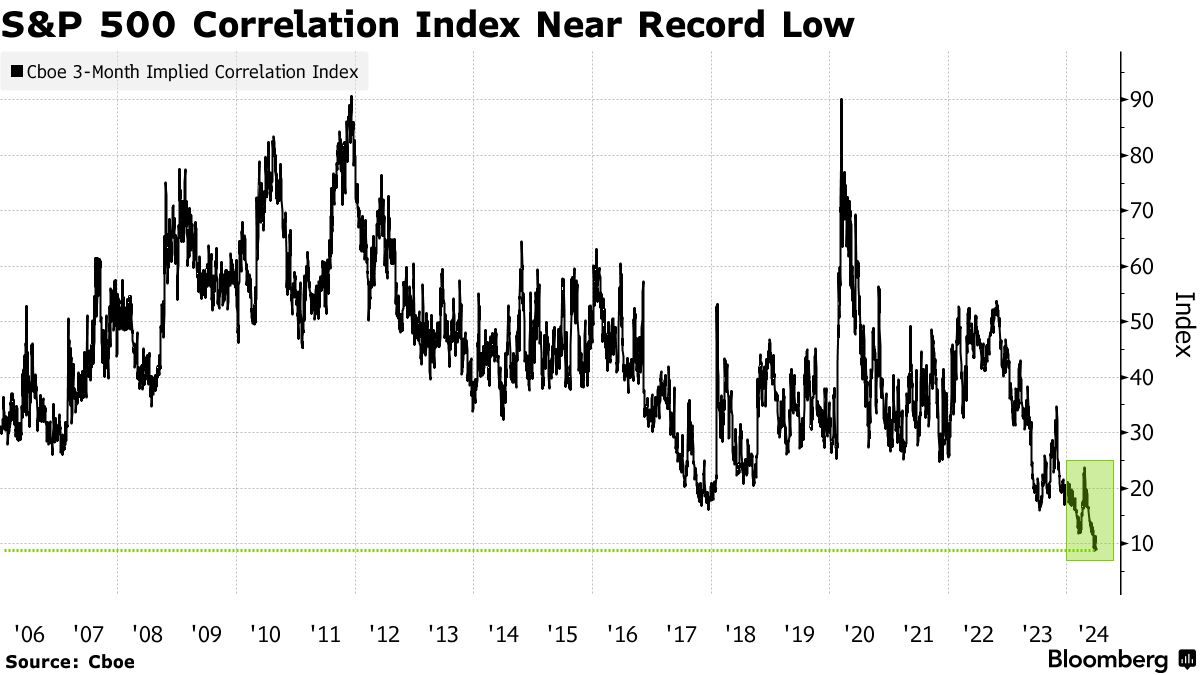 目前的担忧是,一旦市场各股票之间的相关性开始对齐,波动性的激增将是不可避免的,而很少有人为此做好准备。