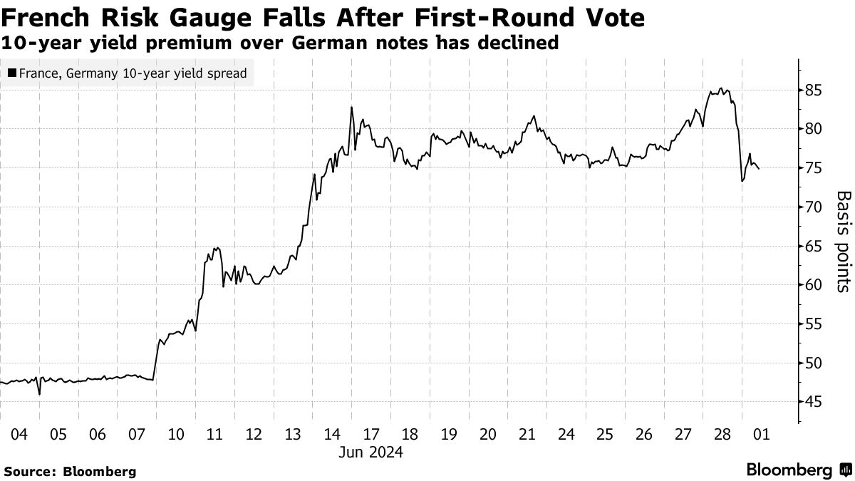 每种可能的情景都只提供了中期内政府稳定性、政策以及对更广泛地区的影响的不明朗前景。周一市场反应反映了这一点:法国股市和欧元上涨,而法国和德国债券收益率之间的利差正在走向两周内最低水平——但随着投资者的疑虑回归,收益减少。