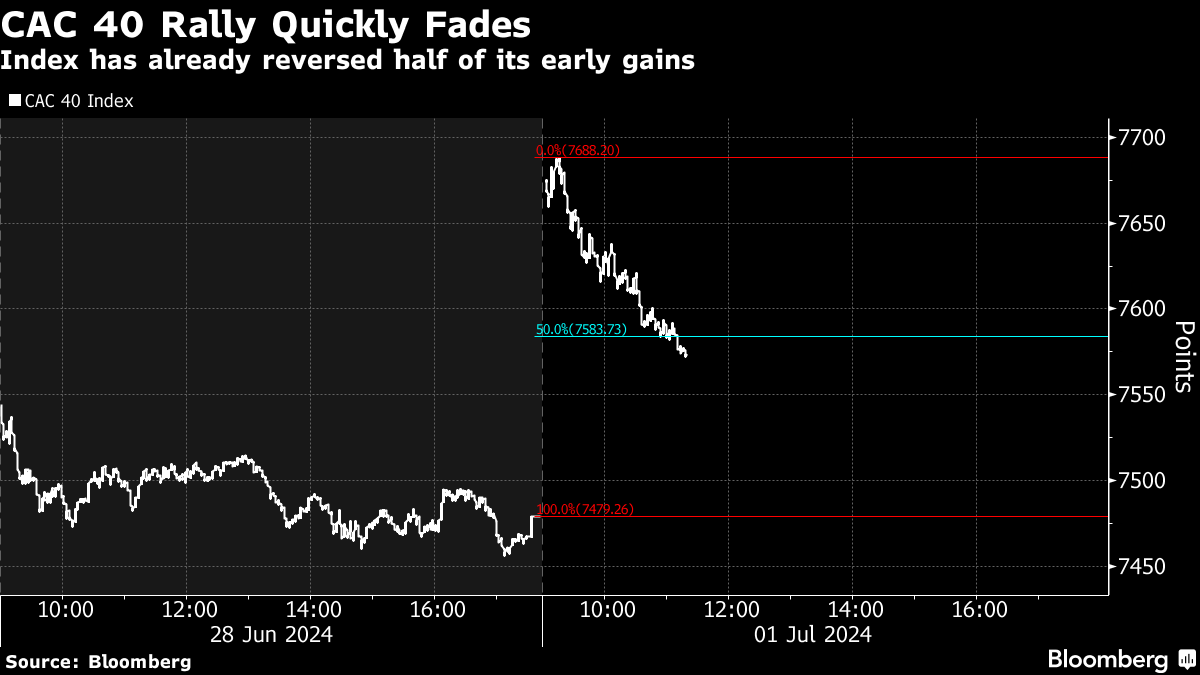 法国市场上涨 在勒庞的国民集会党以比民调显示的胜利幅度小结束后。然而,乐观情绪是短暂的。