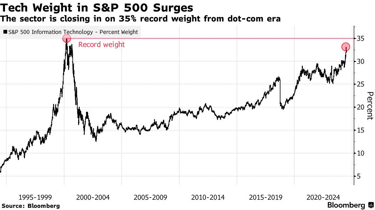 大型科技公司多年来一直占据着股市的主导地位,但他们的控制力从未像现在这样强大。根据彭博社编制的数据,一个对标普500指数的版本,几乎没有区分微软公司和梅西百货等公司,今年的表现落后于市值加权的同行10个百分点,创下了一月至六月的最差表现记录。