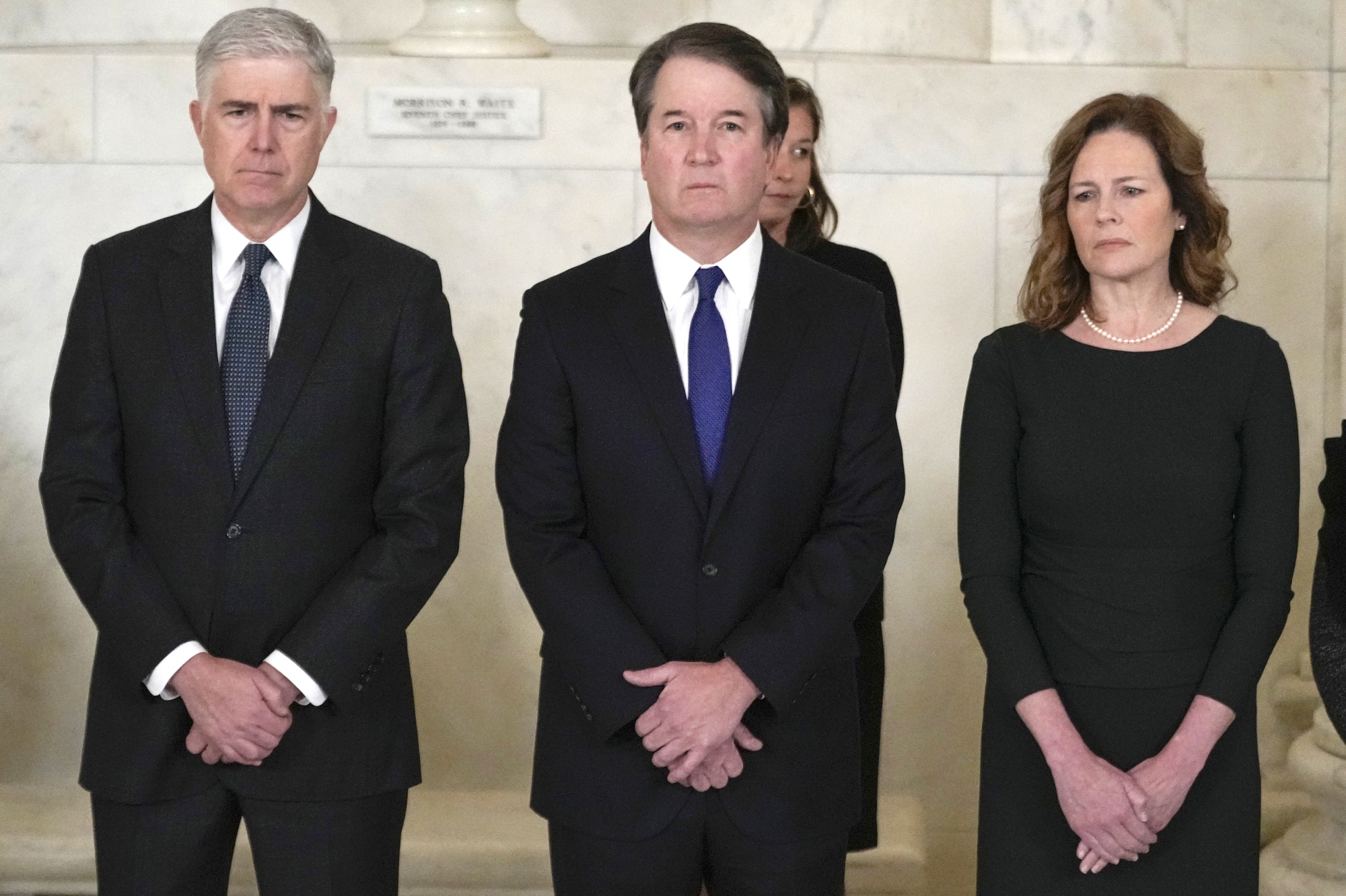 尼尔·戈萨奇、布雷特·卡瓦诺和艾米·科尼·巴雷特。摄影师:雅克琳·马丁/AP图片/彭博社这两项决定标志着法院与一位曾经和可能未来的总统的关系进入了一个新阶段,这位总统提名了三名大法官——尼尔·戈萨奇、布雷特·卡瓦诺和艾米·科尼·巴雷特。这些任命造就了一个6-3的保守派多数派,推翻了《罗伊诉韦德案》,打击了行政国家并废除了高等教育中的平权行动。
