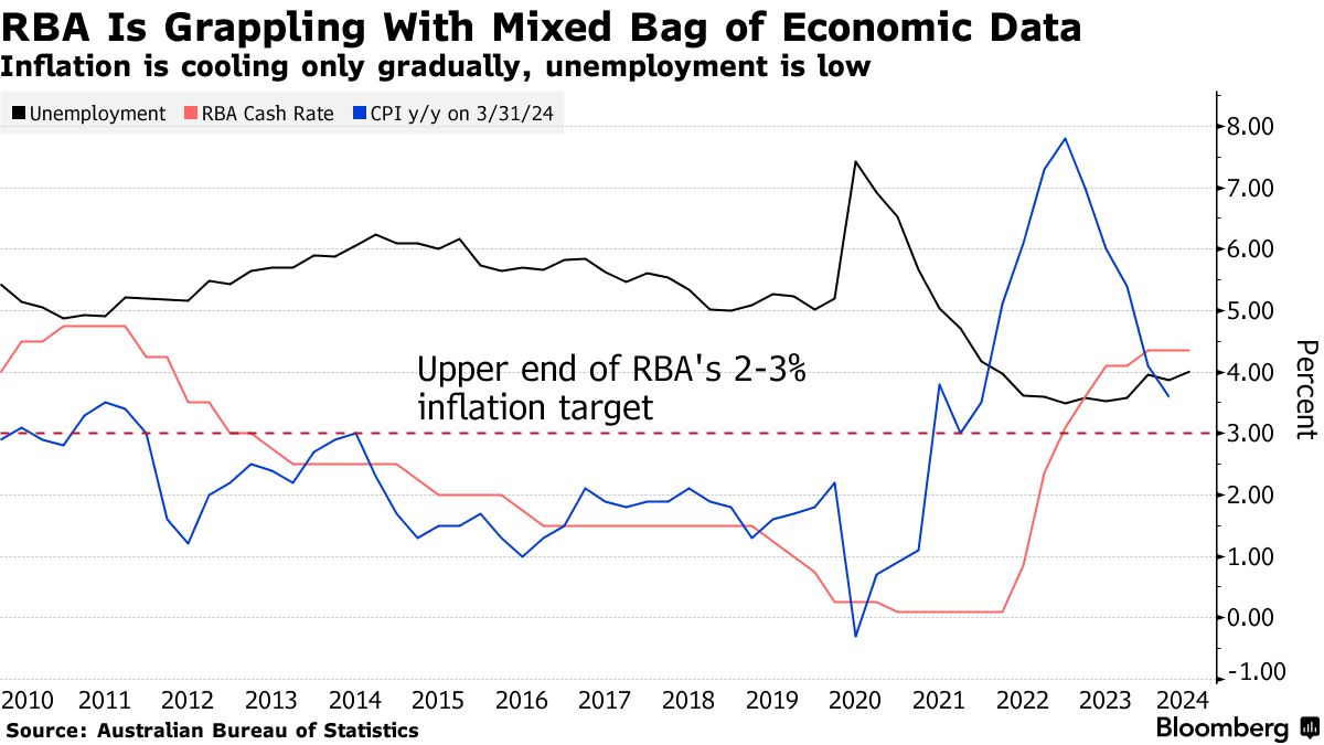 澳洲央行在2022年5月至2023年11月之间进行了13次加息,这严重打击了私人消费,但通胀仍然是一个令人担忧的问题。