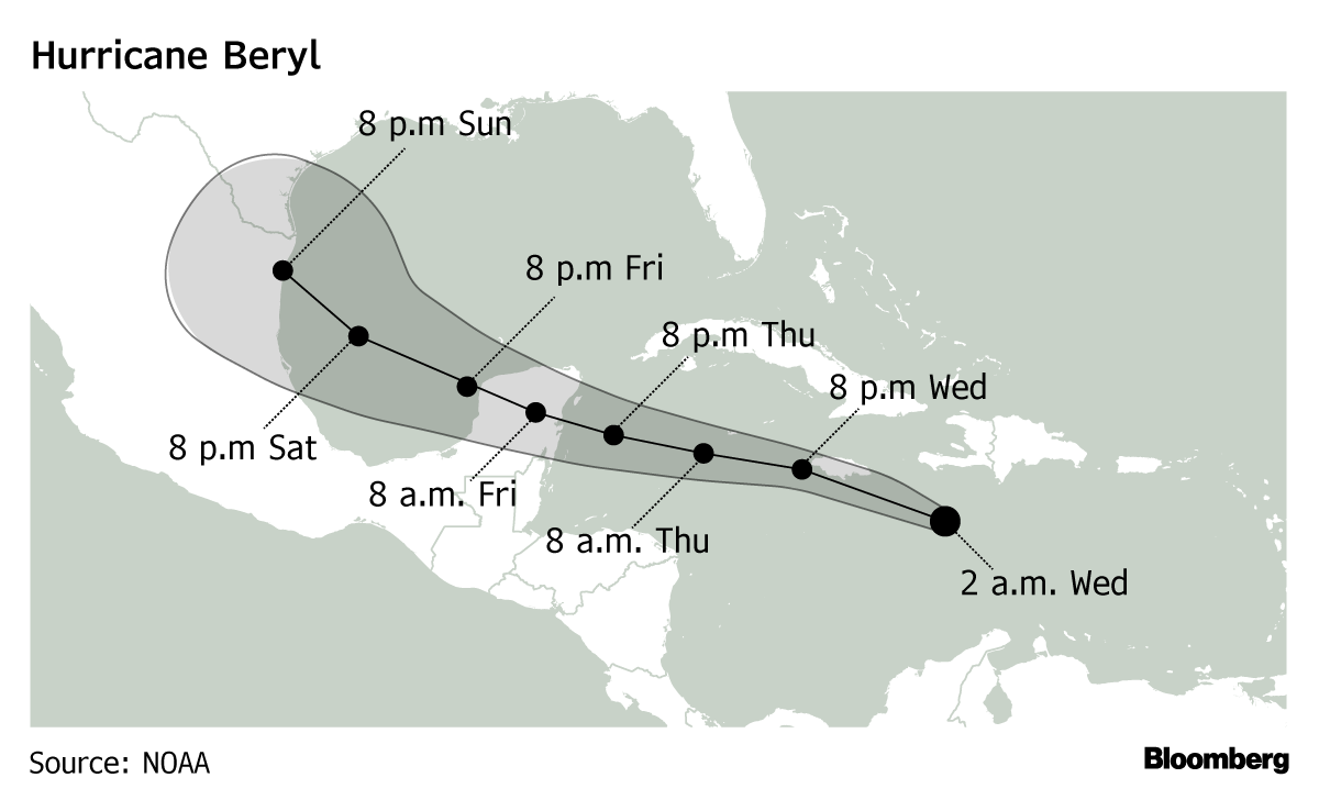 飓风贝瑞 的风力略有减弱,它正在向牙买加移动,可能会造成超过10亿美元的损失。它预计今晚将移向开曼群岛。
