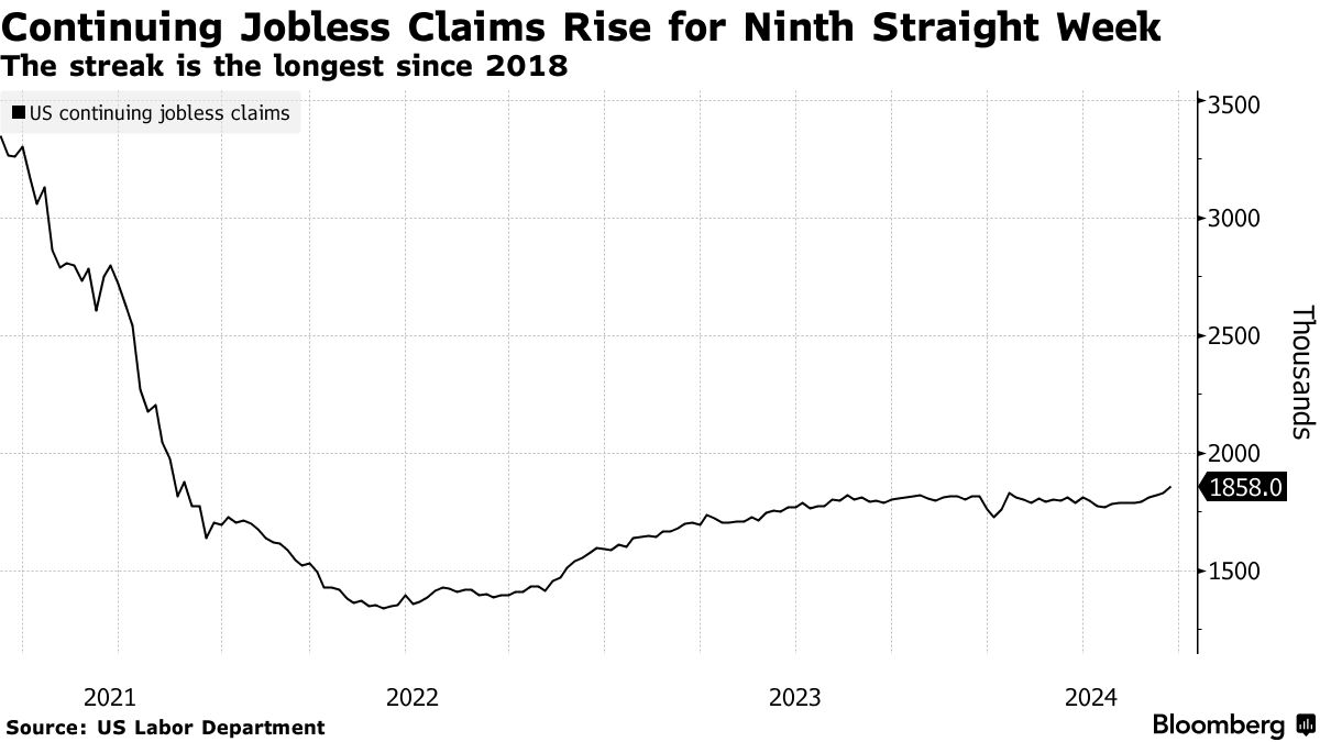 持续失业索赔的水平表明,随着借贷成本上升,经济放缓,对劳动力的需求更有限。与此同时,首次申请数量表明解雇逐渐增加。