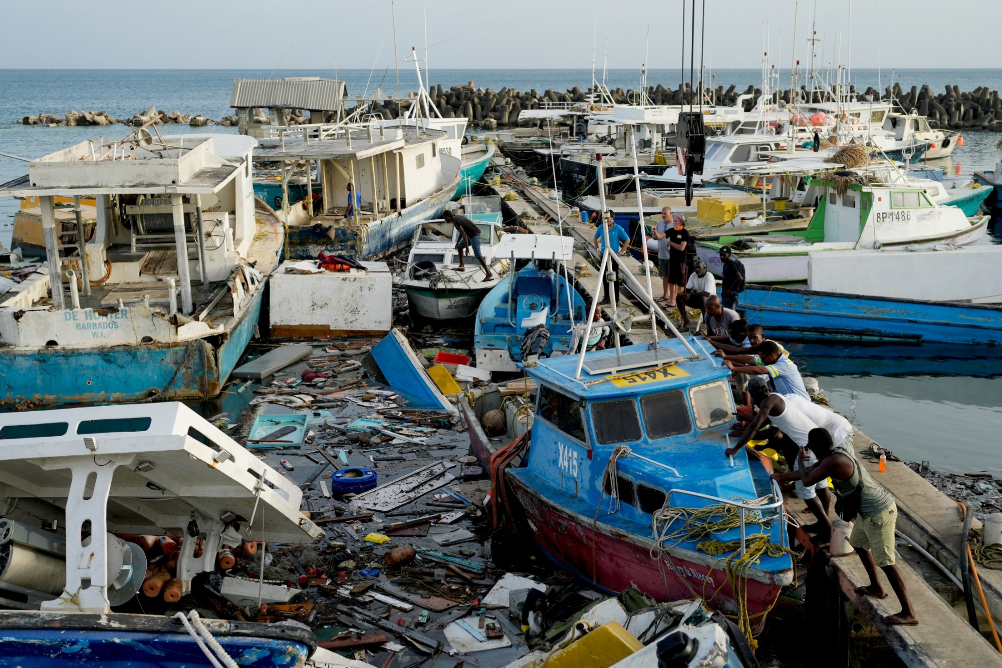 巴巴多斯布里奇敦渔业遭受飓风破坏,7月2日。来源:美联社贝瑞尔周一登陆格林纳达第二大岛卡里亚库。