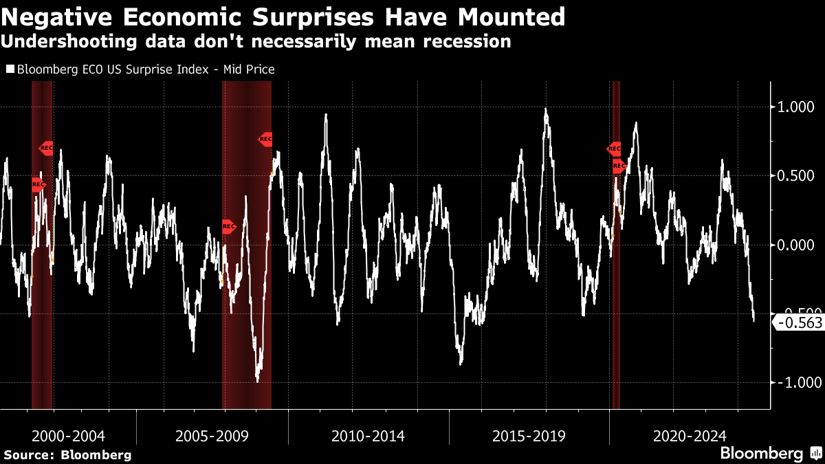 如果你看看过去几个月美国经济的预期与实际表现,这是近十年来表现最差的一次。