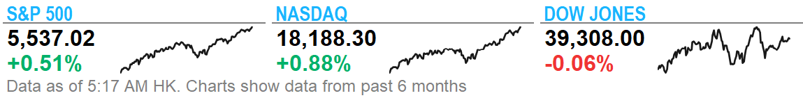 Bloomberg/Getty大多数联邦官员 认为经济“逐渐降温”,希望在降息之前获得更多数据,六月份会议记录显示。周三的新报告显示,服务业上个月以四年来最快的速度收缩,公司新增的工作岗位减少。国债和股票在数据上涨。亚洲股市期货指数上涨。