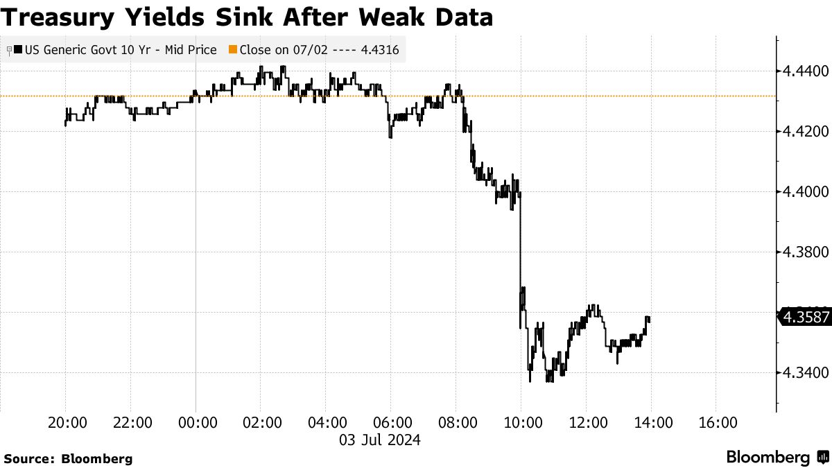 随着一系列弱于预期的经济报告强化了美联储今年开始降息的理由,华尔街交易员推高了股市,债券收益率下降。