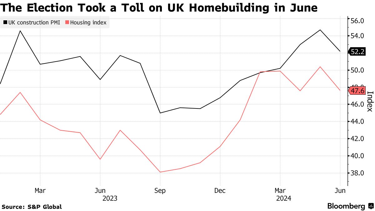 英国房屋建设因选举前项目延迟而停滞-彭博社